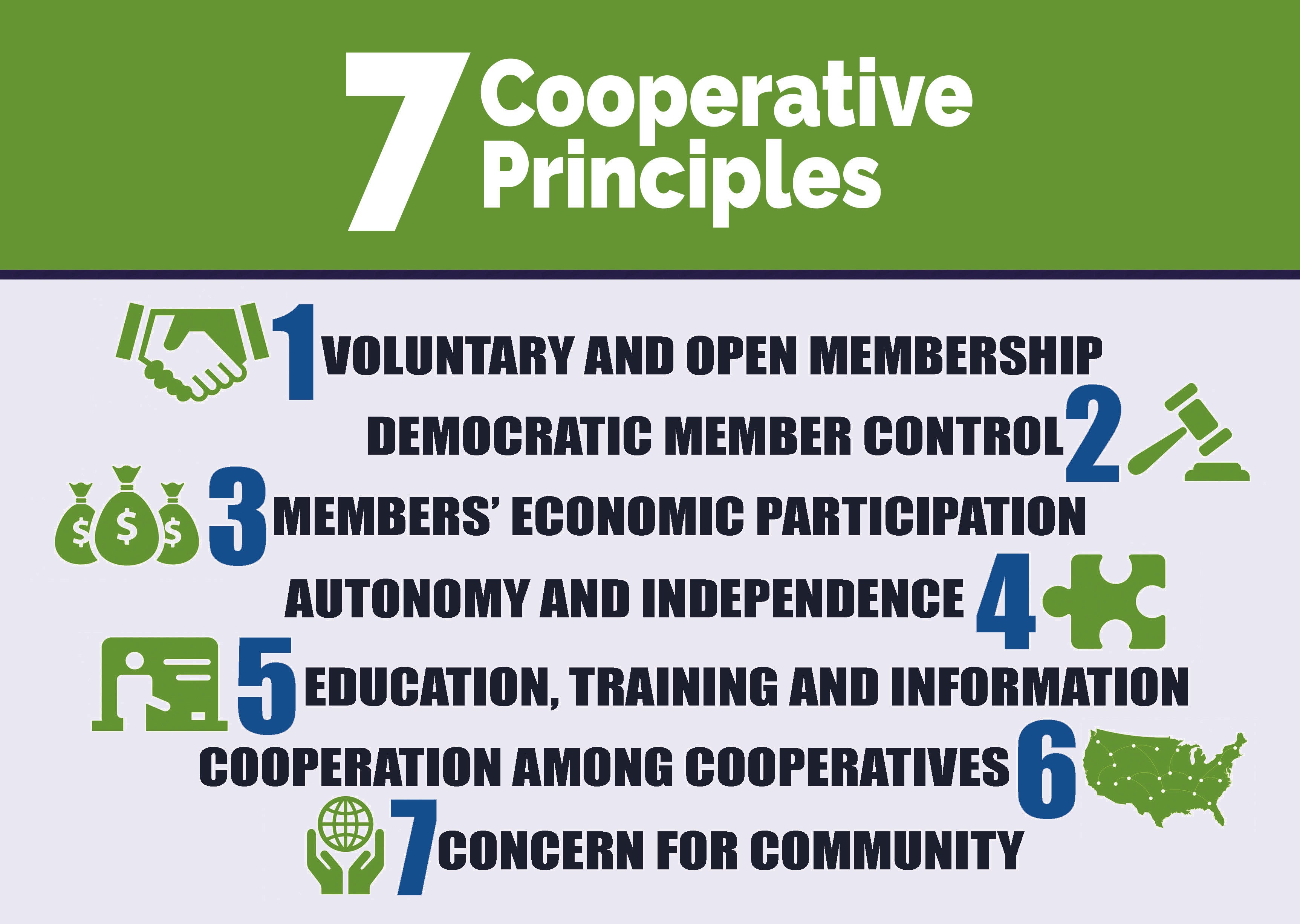From the outside, many cooperatives look like any other business, since a cooperative provides products and services like conventional businesses do. But the following principles are what make cooperatives different.