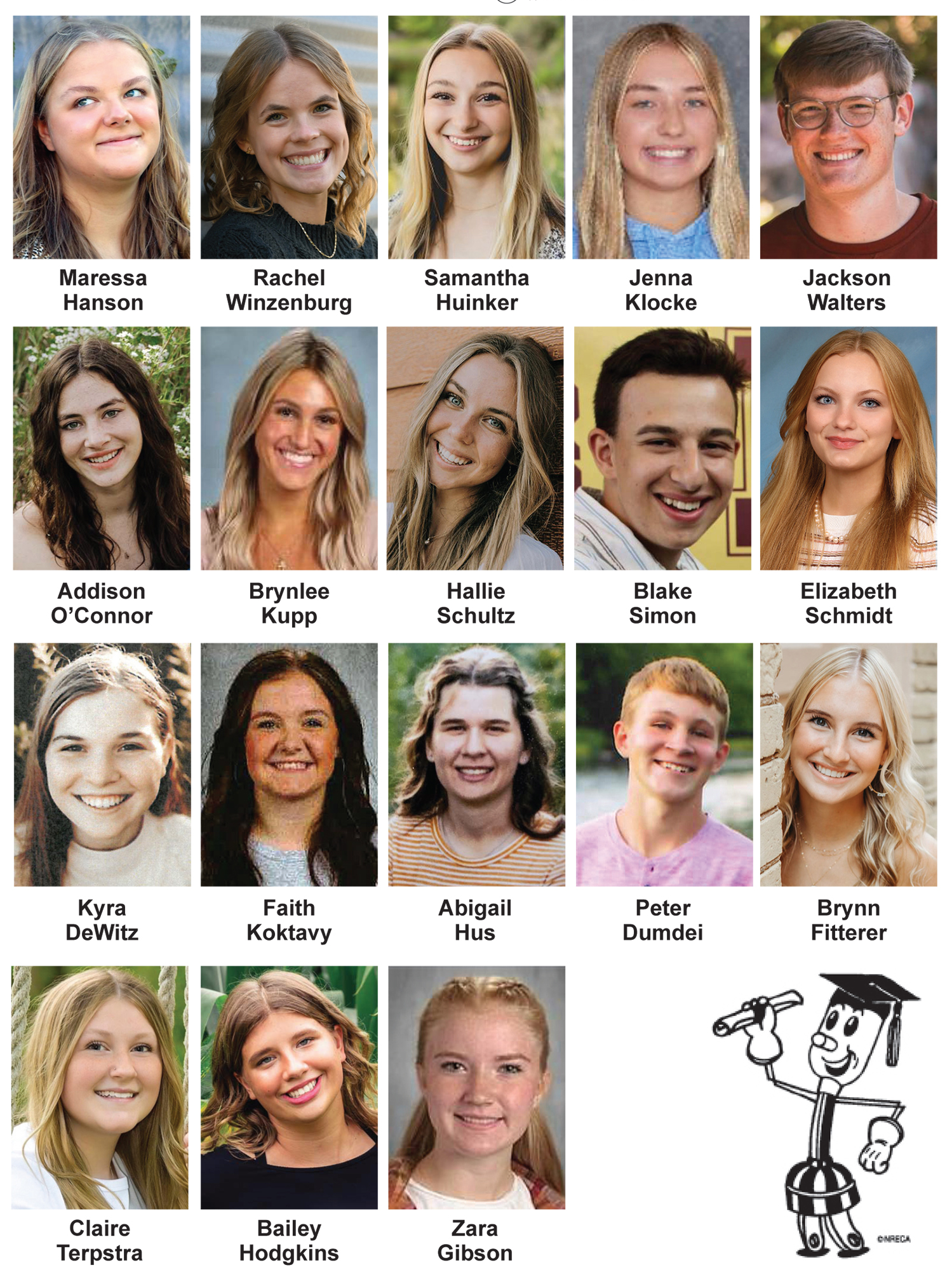 • Elizabeth Schmidt, Owatonna Christian School, the daughter of Robert and Sarah Schmidt, Claremont.
